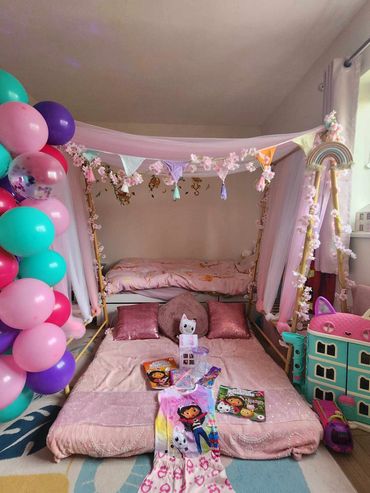We understand how busy life can be, which is why our canopy sleepovers are designed to take the hassle out of party planning. From setup to styling, we handle everything, so you can sit back and enjoy the magic with your loved ones. With comfort, creativity, and convenience all in one, our sleepover canopies make every celebration feel extra special.